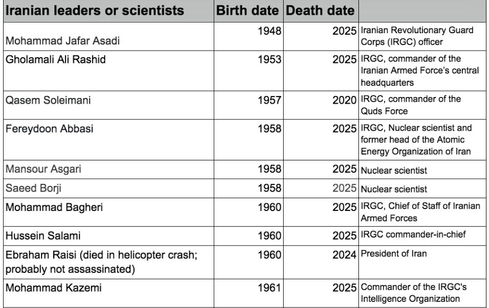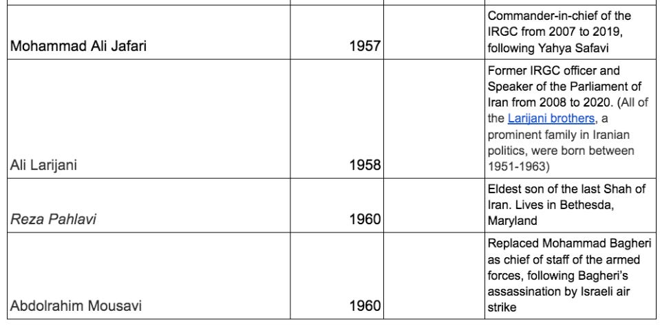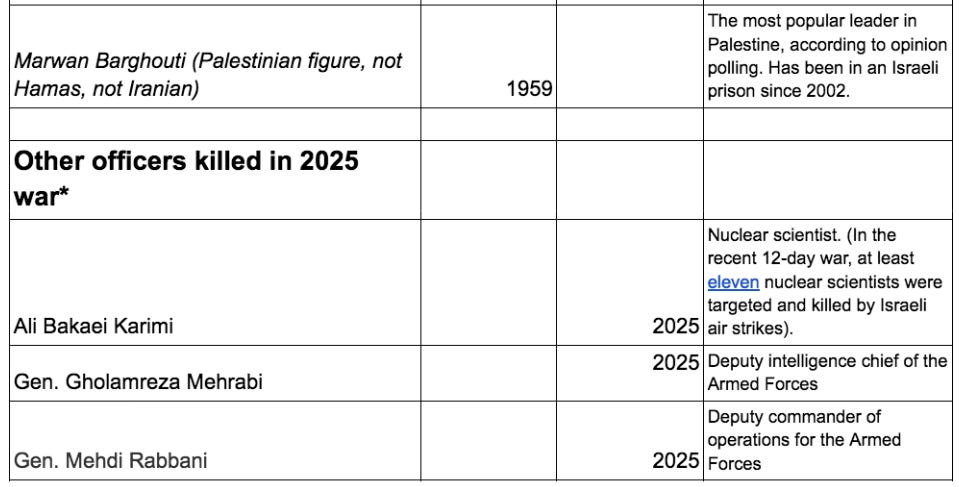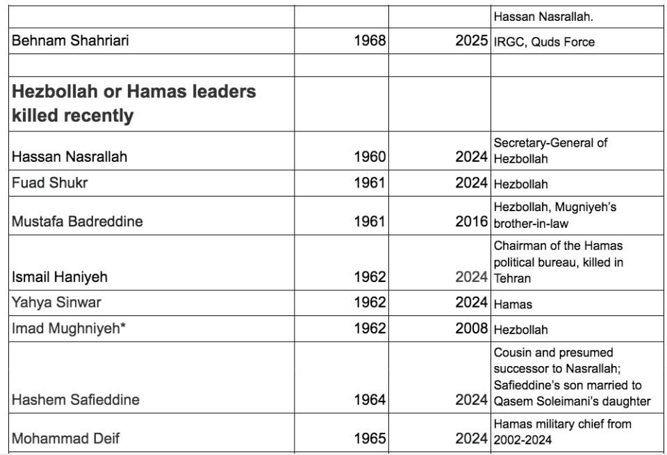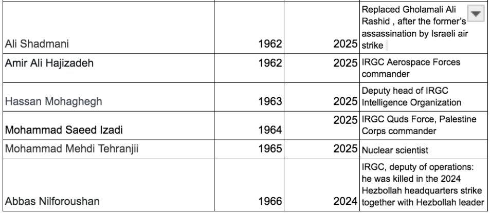 *Source for ‘other officers killed in 2025 war’, whose birth years I could not find: https://southfront.press/iranian-media-names-30-generals-killed-by-israel/