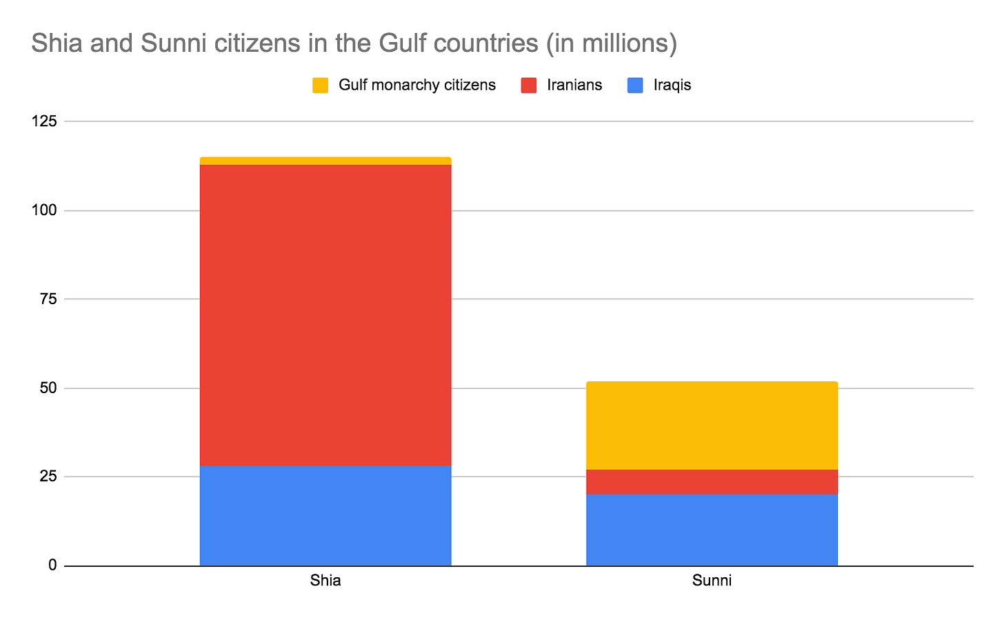 Shia Muslims outnumber Sunnis more than 2-to-1 within the Gulf region (not including the Gulf Arab monarchies’ foreign resident population, though many migrant workers in those countries are Sunni), but in the Middle East as a whole the reverse may be true. Shia are only an estimated 10-13% of the world’s Muslims. Only Iran, Iraq, Pakistan, and India are home to 10+ million Shia; only Iran, Iraq, Azerbaijan, Lebanon, and Bahrain have majority or plurality Shia populations. Iran, which only started becoming Shia on a large scale in the 1500s, is home to between ½ and ⅓ of all Shia. In Saudi Arabia, the oil-rich Eastern Province bordering the Gulf had a Shia majority until fairly recently.