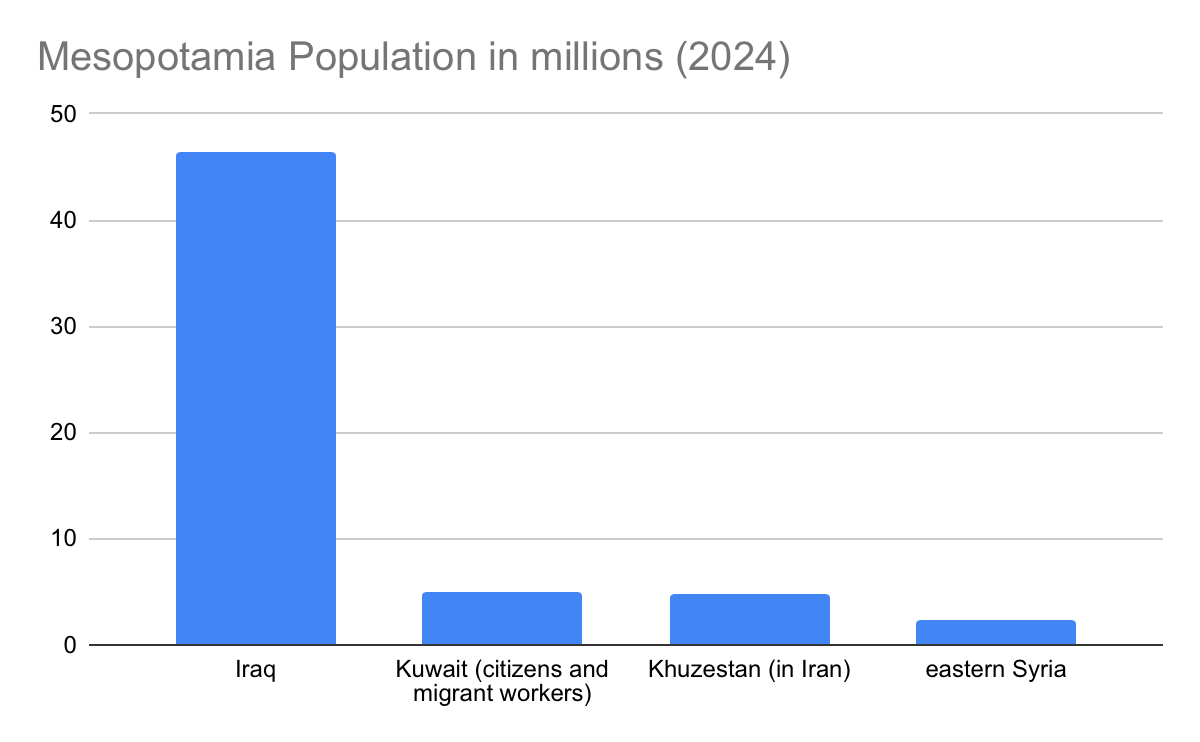 Iraq has (roughly speaking) more than 4/5ths of the Mesopotamian region’s population, but less than half of its oil reserves, and only a sliver of its coastline on the Gulf. It has therefore sometimes been an Iraqi aspiration to expand its current territory—not just for Saddam Hussein, who began the Iran-Iraq War by invading and laying claim to Khuzestan, then annexed Kuwait two years after the war’s end–but also for several previous Iraqi governments, going back to the Hashemite kingdom of Iraq upon its creation in 1932.