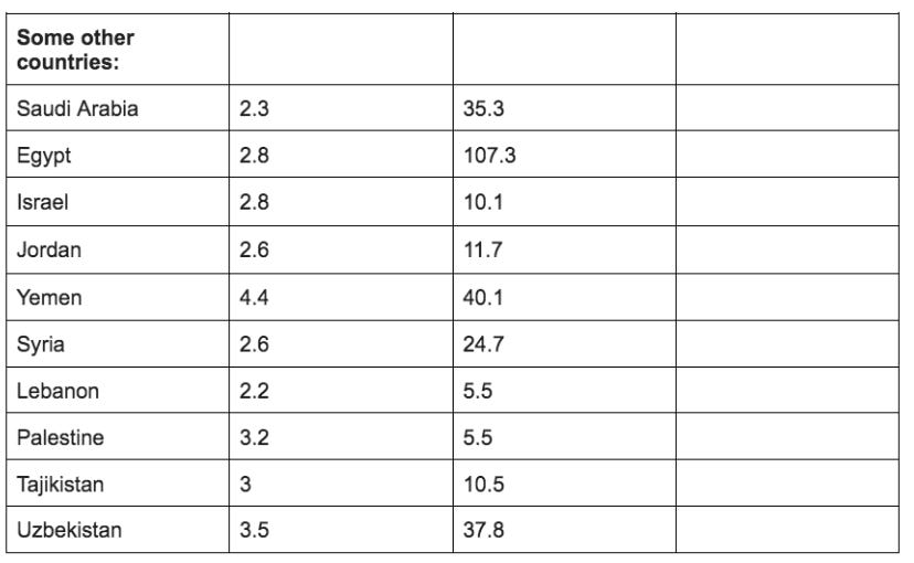 Total fertility rate, Wikipedia. The closest comparison to Iran in this regard is Saudi Arabia, which has a significantly lower fertility rate than its more populous neighbours Yemen, Iraq, and (across the Red Sea) Sudan.
