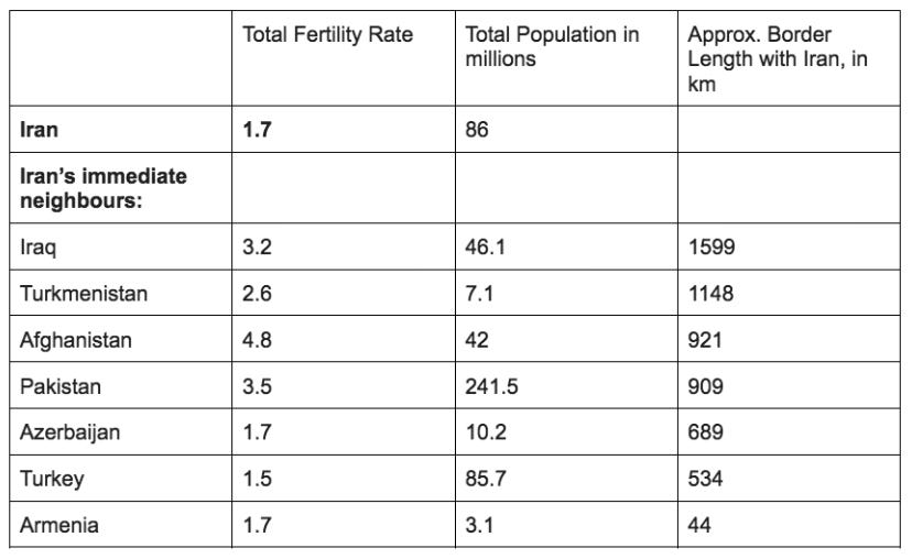 - Fertility rate discrepancy in Iran vs neighbouring countries